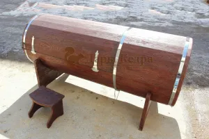 Это горизонтальная фитобочка с эксклюзивным оформлением, покрытием в цвет или резьбой. Индивидуальная модель придаст вашему изделию оригинальный внешний вид. Парение в фитобочке благотворно влияет на организм в целом: повышается иммунитет, выводятся шлаки и токсины, улучшается работа органов тела и состояние кожи. Подходит для коммерции.